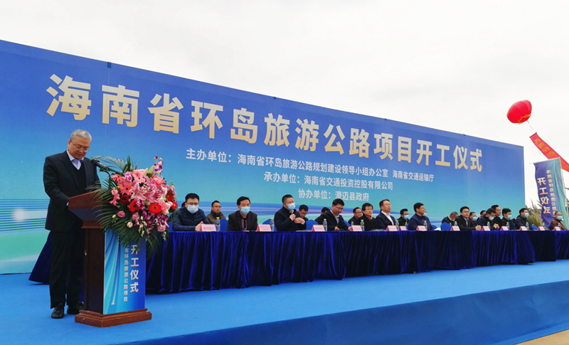 2020年12月31日上午,海南環(huán)島旅游公路開(kāi)工儀式在澄邁縣大豐鎮(zhèn)金馬大道舉行,海南省政府、海南省各廳局、沿線13個(gè)市縣代表出席會(huì)議。中交海南區(qū)域總部總經(jīng)理劉軍利代表中交中鐵聯(lián)合體出席開(kāi)工儀式并表態(tài)發(fā)言。