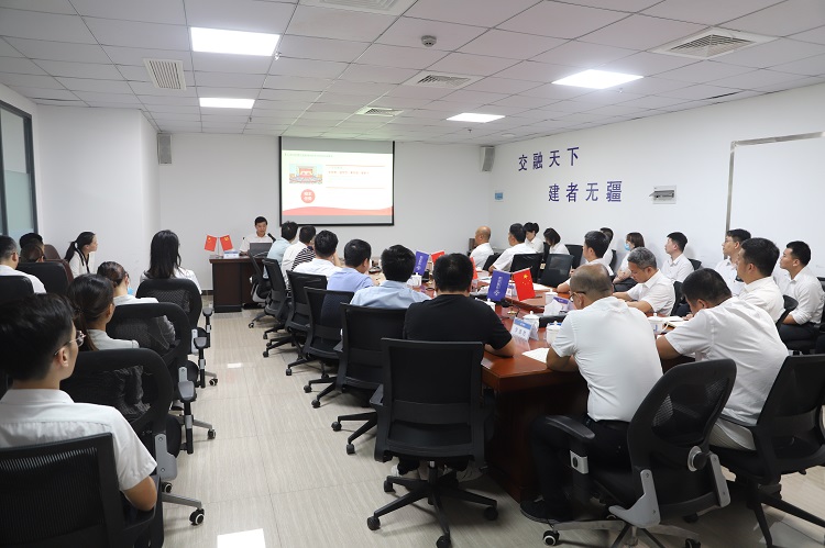 ??谥薪粐d全體干部職工及項目各參建單位負(fù)責(zé)人參加黨課學(xué)習(xí),??谥薪粐d中層以上干部及項目各參建單位負(fù)責(zé)人參加座談會。